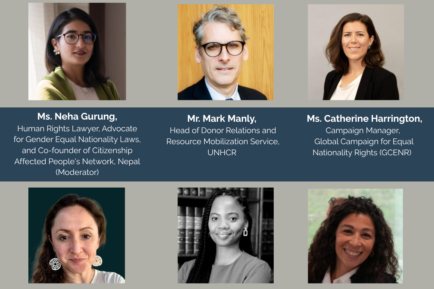 - Ms. Catherine Harrington, Campaign Manager, Global Campaign for Equal Nationality Rights (GCENR)