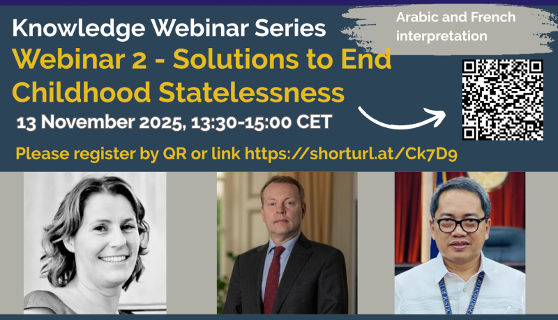 The Global Alliance to End Statelessness held its second Knowledge Webinar on 13 November, focusing on “Solutions to End Childhood Statelessness.” Childhood statelessness remains one of the most pressing issue, widely recognized by Global Alliance members and stakeholders as requiring intensified action, with governments carrying a clear legal and moral obligation under the Convention on the Rights of the Child (CRC) to ensure that every child acquires a nationality at birth or as early as possible.
