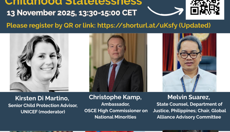 The Global Alliance to End Statelessness held its second Knowledge Webinar on 13 November, focusing on “Solutions to End Childhood Statelessness.” Childhood statelessness remains one of the most pressing issue, widely recognized by Global Alliance members and stakeholders as requiring intensified action, with governments carrying a clear legal and moral obligation under the Convention on the Rights of the Child (CRC) to ensure that every child acquires a nationality at birth or as early as possible.
