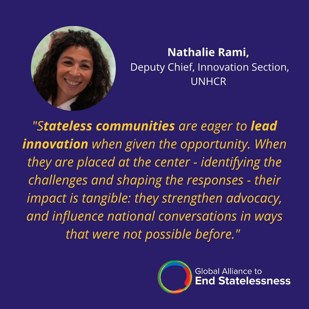 outlined that small-scale grants from UNHCR, as well as the Refugee-Led Innovation Fund support stateless-led organizations with both funding and organizational development, and stressed the growing opportunities from philanthropic foundations and private donors, including high-net-worth individuals seeking participatory engagement. These donors are not only providing funds but also offering expertise, mentorship, and active collaboration. They are particularly drawn to transformational organizations that can clearly demonstrate a problem and illustrate community mobilization around solutions.