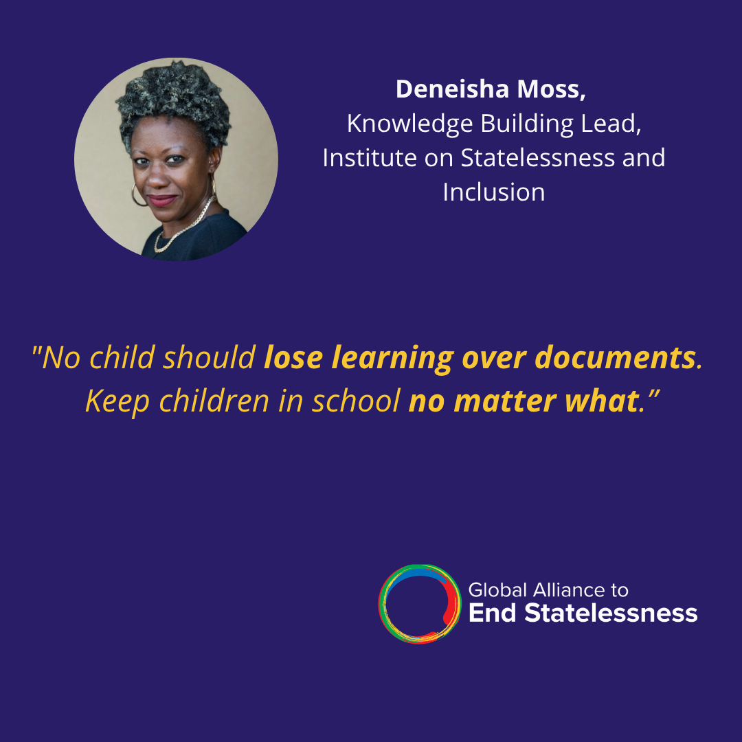 Deneisha Moss, Knowledge Building Programme Lead at the Institute on Statelessness and Inclusion (ISI), highlighted findings from a recent research report showing that barriers to education for stateless children are consistent across regions. The lack of documentation remains the primary obstacle at every stage, leading to fragmented educational journeys, high dropout rates, psychological hurdles that limit future prospects. She called on governments to adopt flexible approaches and provide alternative solutions to keep children enrolled until their documentation issues are resolved.